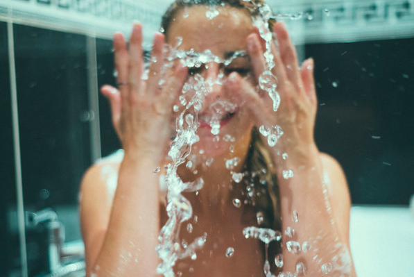 Dùng vòi hoa sen xả trực tiếp vào mặt