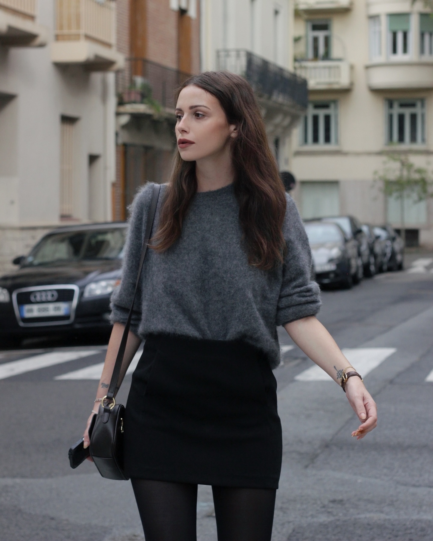 Các quý cô người Pháp thường kết hợp áo len màu trung tính với quần jeans hoặc chân váy ngắn để tăng hiệu quả “hack” tuổi, mà vẫn ghi điểm tinh tế.
