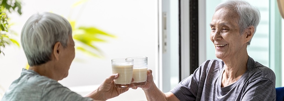 Uống 1-2 ly sữa mỗi ngày giúp người cao tuổi nhận được lượng canxi cần thiết.