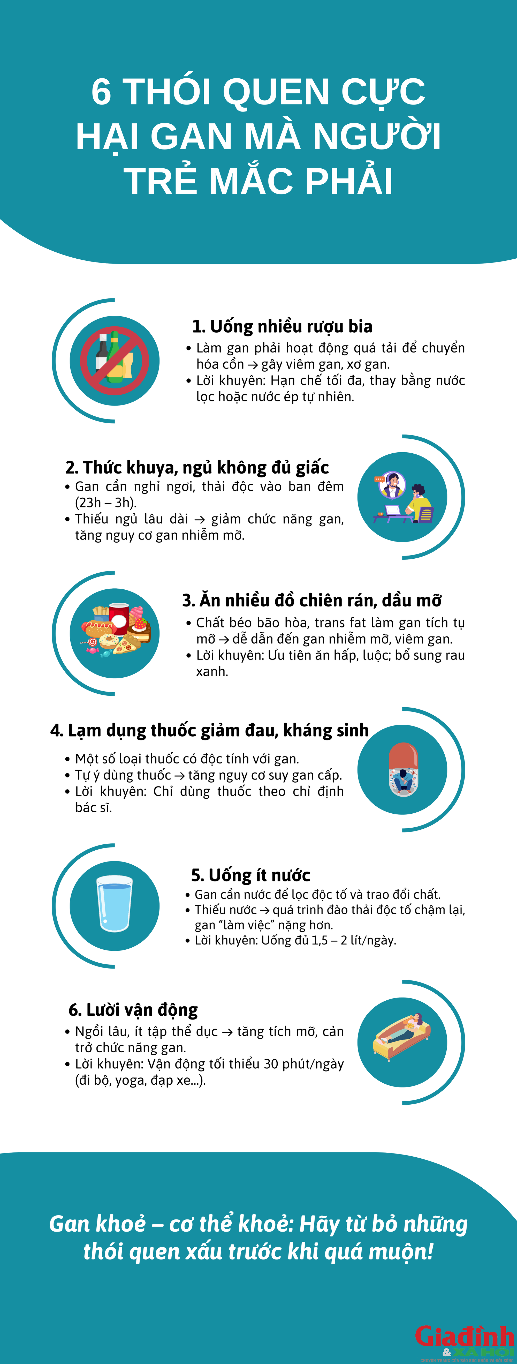 Gan khoẻ mới sống khoẻ, nhưng 6 thói quen sai lầm quen thuộc khiến giới trẻ vô tình đẩy mình vào vòng nguy hiểm.