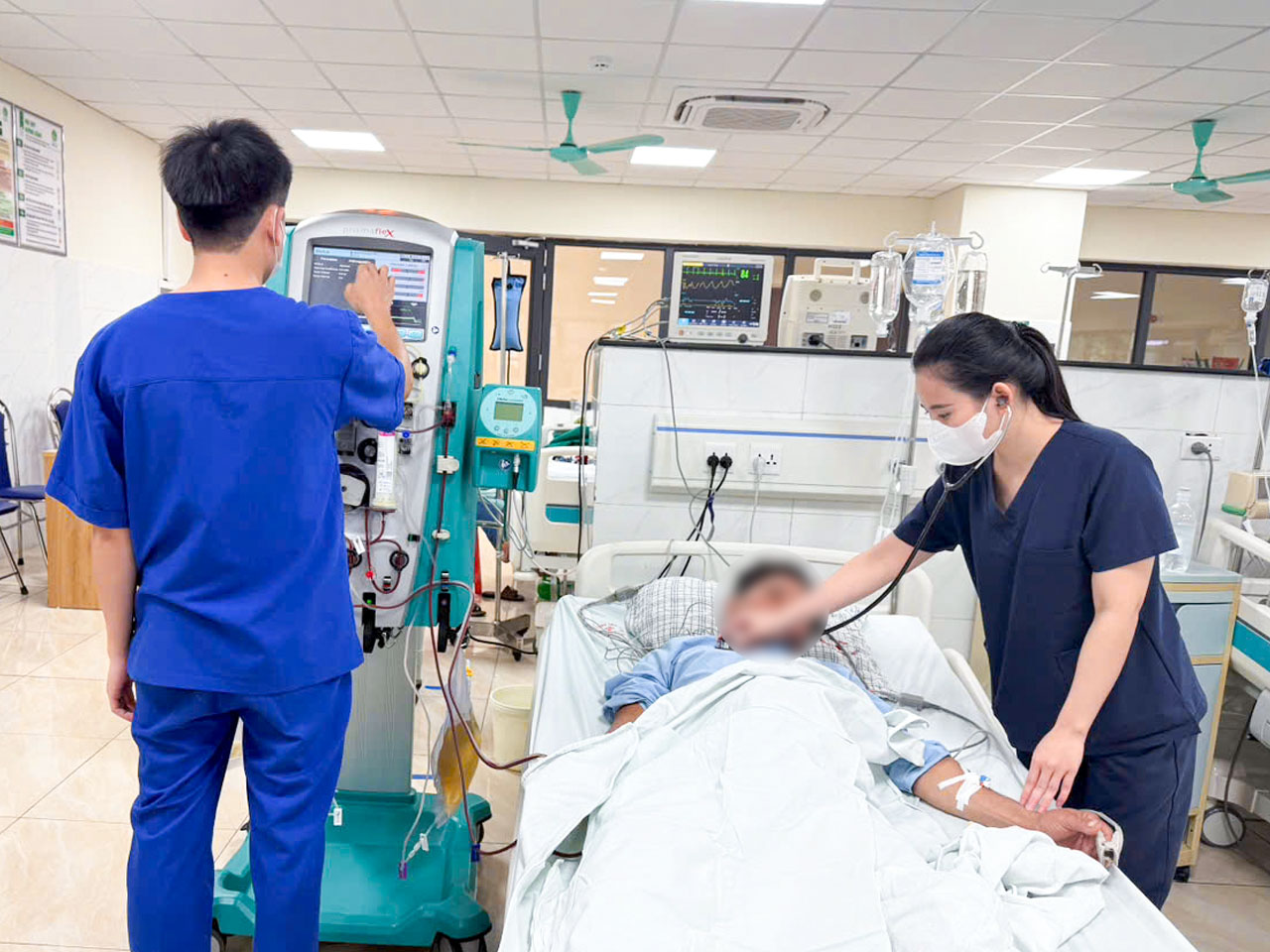 Bệnh nhân được lọc máu thay huyết tương khẩn cấp. Ảnh: BVCC