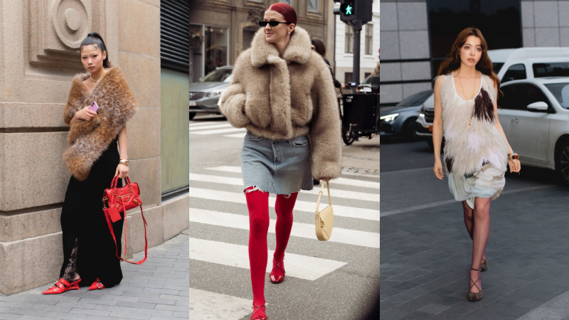 Không chỉ dừng ở áo khoác dài, lông thú nhân tạo còn được “trẻ hóa” qua áo lửng, phụ kiện như túi, mũ, khăn. Khi kết hợp cùng denim hoặc satin, chất liệu này tạo sự đối lập thú vị giữa sang trọng và phóng khoáng.