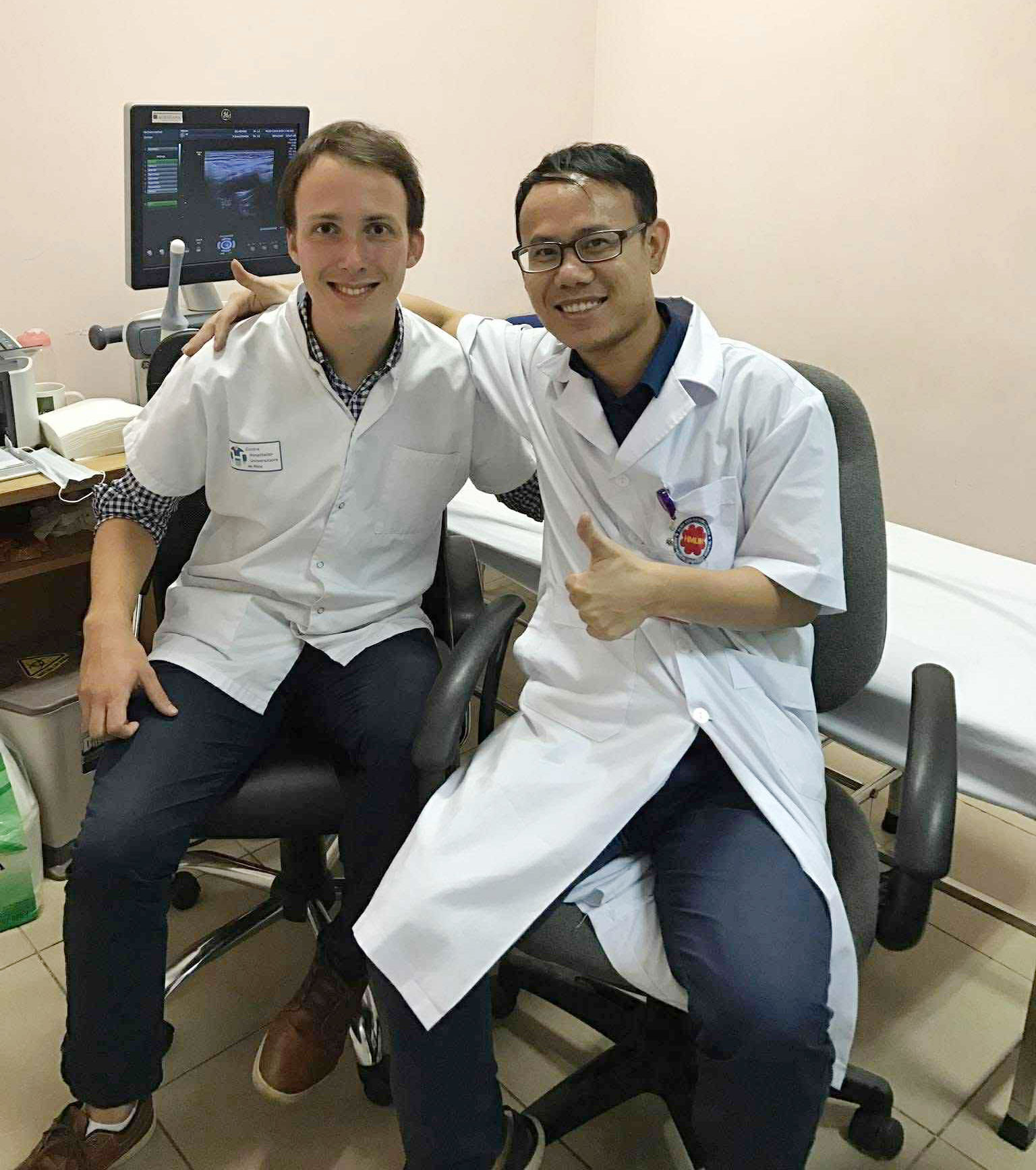 Bác sĩ Phạm Chu Hoàng và đồng nghiệp nước ngoài. Ảnh: NVCC