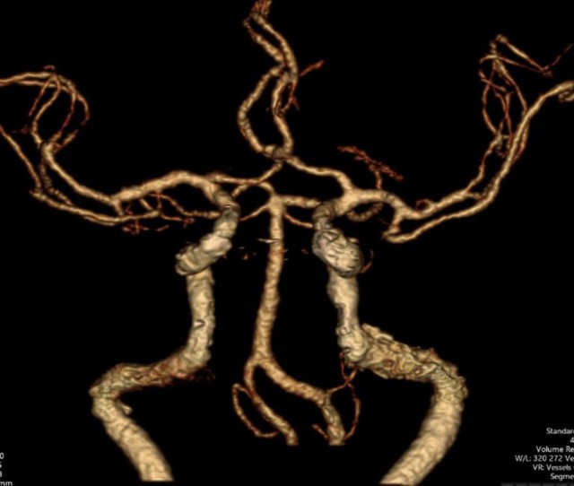 Hình ảnh CT mạch máu não không ghi nhận tắc mạch máu lớn của bệnh nhân bị đột quỵ. Ảnh: BVCC